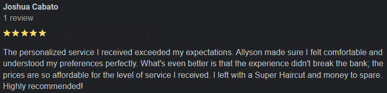 | Mens Haircut + Shampoo & Style | $35 |
